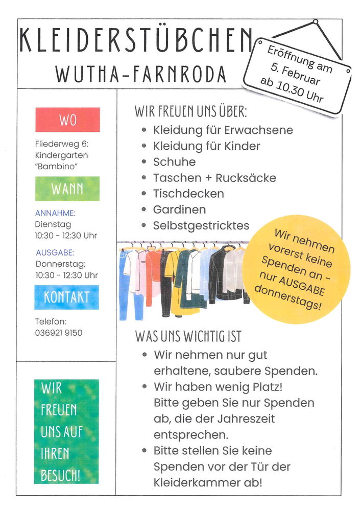 Wir bitten alle Spender herzlich darum, nur gut erhaltene und saubere Kleidung und Wäsche abzugeben. Wir bitten außerdem bei Bekleidung und Schuhe darauf zu achten, dass wir aus Platzgründen nur saisonale Ware annehmen können (z.B. nur lange Hosen im Herbst/Winter und T-Shirts im Frühjahr/ Sommer).