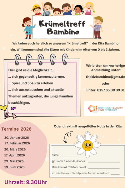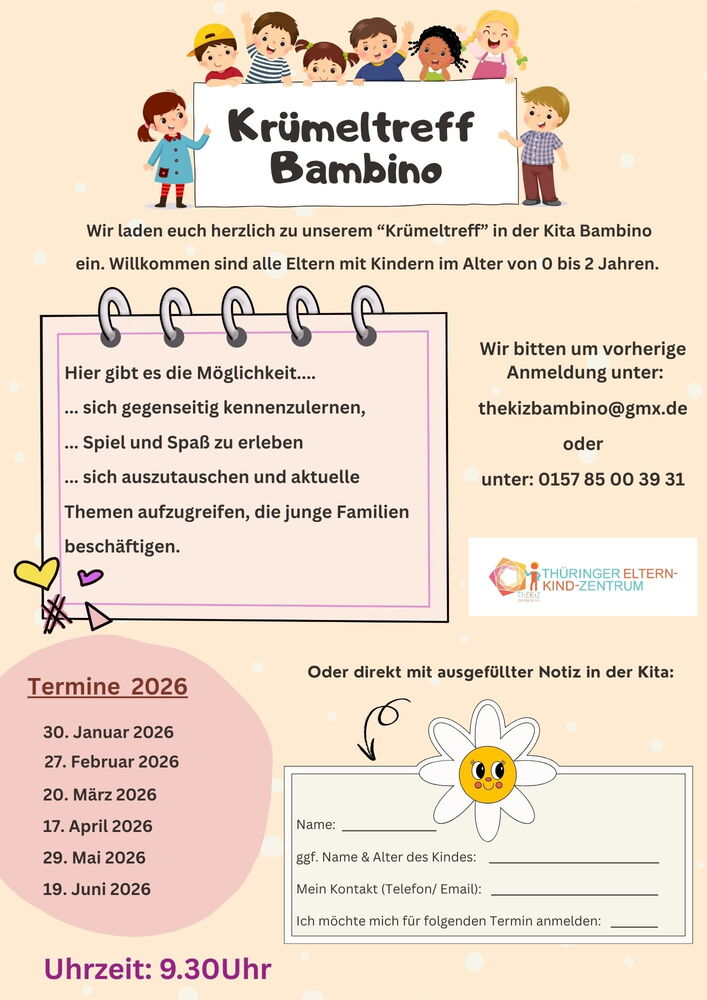 Wir bitten um vorherige Anmeldung unter: thekizbambino@gmx.de oder per Telefon: 015785003931